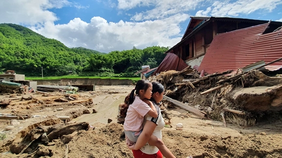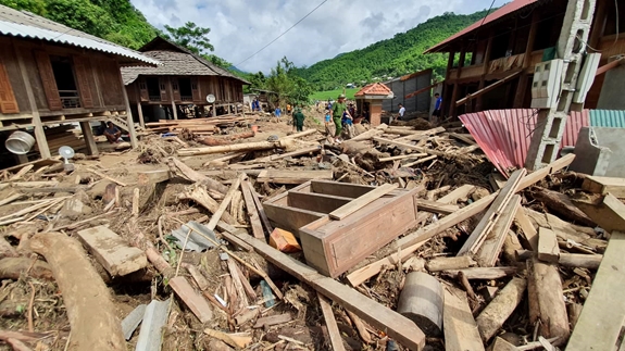 Lũ dữ đã qua, song hậu quả để lại ở Na Mèo hết sức nặng nề. Nhiều ngôi nhà bị sập và bị lũ cuốn trôi. |