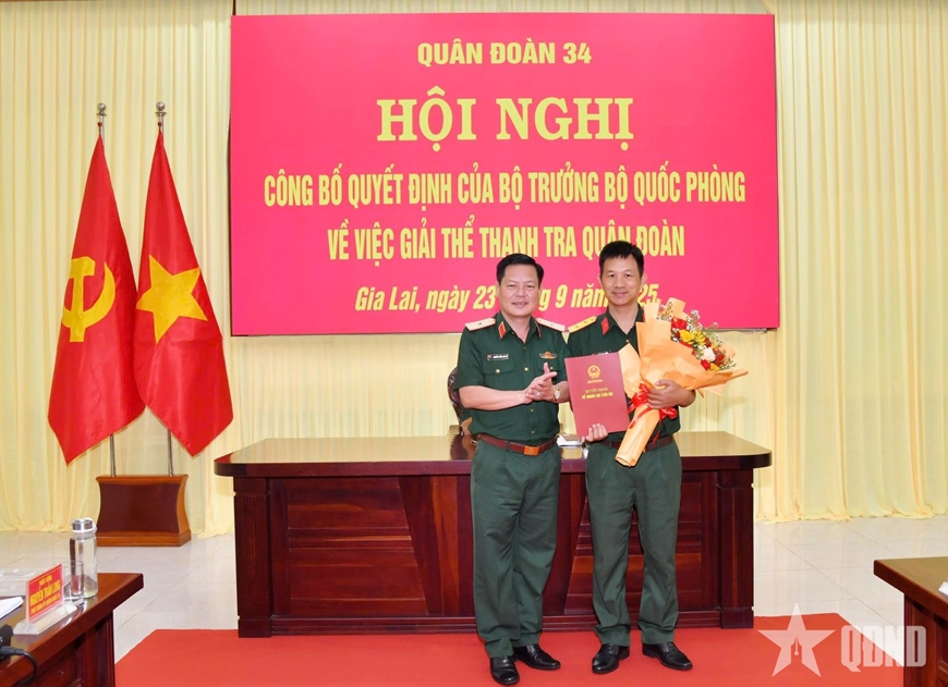 Thực hiện chủ trương kiện toàn tổ chức, biên chế trong Quân đội nhân dân Việt Nam theo hướng “tinh, gọn, mạnh, hiệu quả”, ngày 24-8-2025, Bộ Quốc phòng đã có Quyết định số 4150/QĐ-BQP về việc tổ chức lại hệ thống cơ quan thanh tra quốc phòng, giải thể cơ quan Thanh tra Quân đoàn 34, đồng thời chuyển giao chức năng, nhiệm vụ, quyền hạn về cơ quan thanh tra cấp trên trực tiếp.