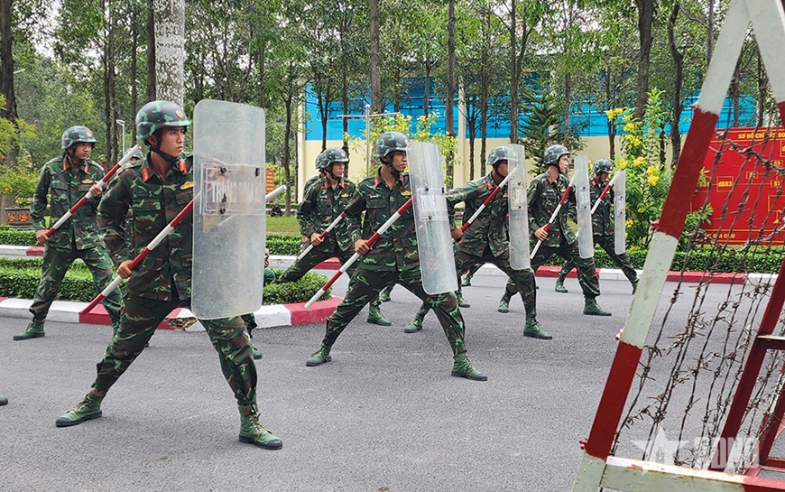 | Luyện tập SSCĐ và xử lý tình huống tại Trung đoàn 1, Sư đoàn 9. Ảnh: LÊ CẦU |