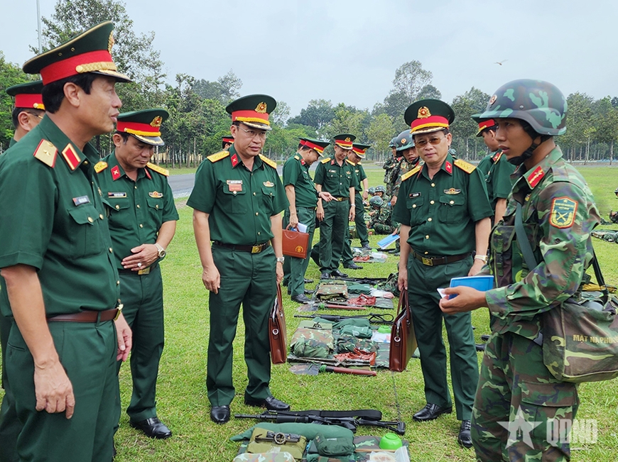 | Thiếu tướng Trần Công Đức, Phó tư lệnh, Tham mưu trưởng Quân đoàn 34 kiểm tra huấn luyện, SSCĐ tại Trung đoàn 1, Sư đoàn 9. Ảnh: LÊ CẦU |