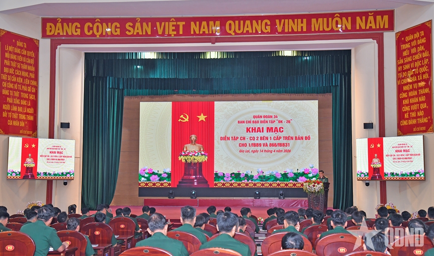 Sáng 14-4, Quân đoàn 34 tổ chức khai mạc cuộc diễn tập chỉ huy - cơ quan 2 bên 1 cấp trên bản đồ cho Trung đoàn Bộ binh 1 (Sư đoàn 9) và Trung đoàn Bộ binh 866 (Sư đoàn 31).