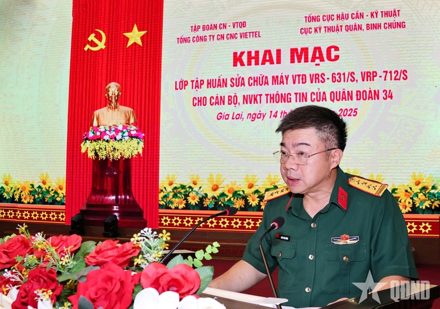 Ngày 14-10, tại Quân đoàn 34, Cục Kỹ thuật quân, binh chủng (Tổng cục Hậu cần - Kỹ thuật) phối hợp với Tập đoàn Công nghiệp - Viễn thông Quân đội (Viettel) tổ chức khai mạc lớp tập huấn sửa chữa máy vô tuyến điện cho cán bộ, nhân viên kỹ thuật thông tin thuộc các đơn vị của Quân đoàn 34.