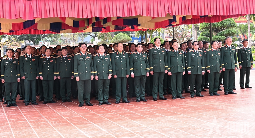 | Các đại biểu dự buổi lễ dâng hoa, dâng hương tại Đài tưởng niệm các Anh hùng liệt sĩ của Quân đoàn 34. |