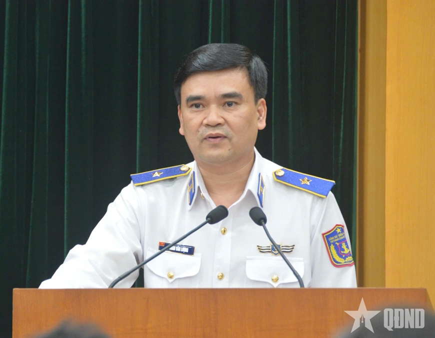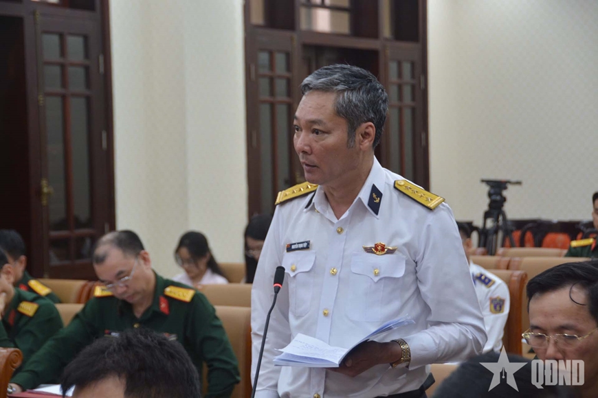 | Đại tá Nguyễn Thịnh Tiệp, Phó tham mưu trưởng Quân chủng Hải quân phát biểu tại phiên họp. |