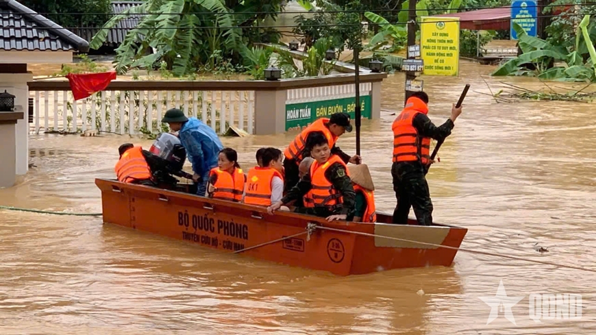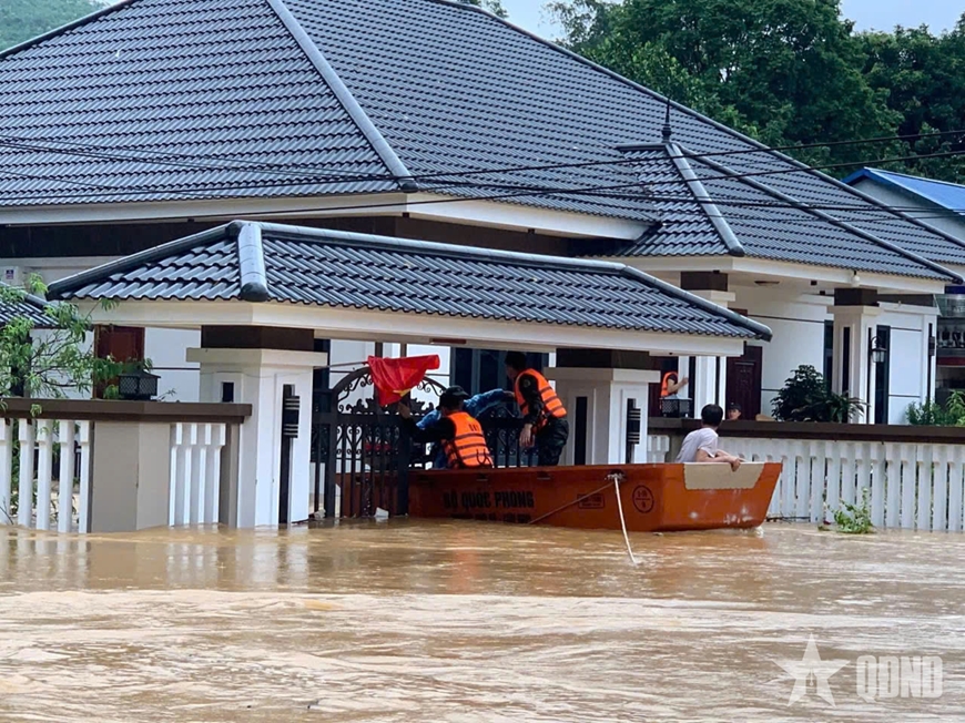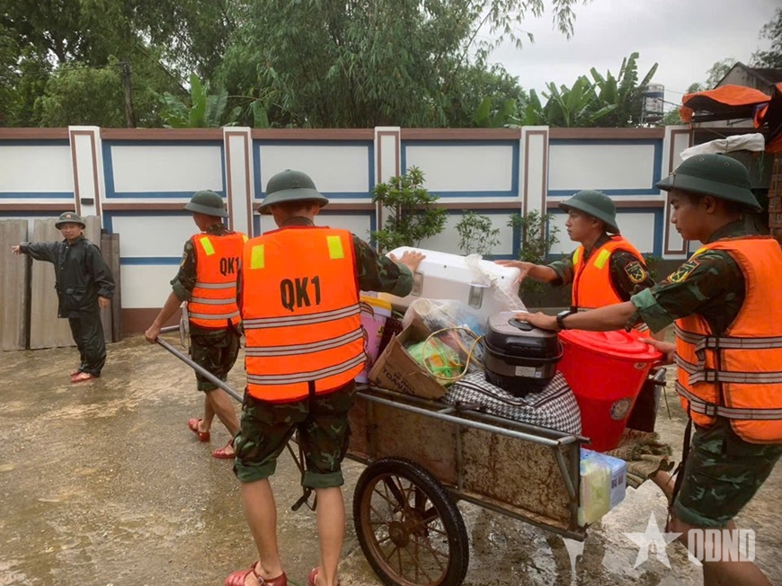 Quân khu 1 đã huy động hơn 7.600 cán bộ, chiến sĩ, dân quân và 128 phương tiện (92 ô tô, 36 xuồng, ca nô các loại) tham gia khắc phục hậu quả mưa lũ.