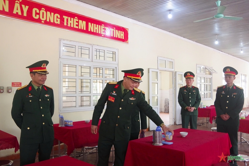 Đoàn công tác Quân khu 1 kiểm tra chất lượng chuẩn bị bữa ăn cho bộ đội tại Trung đoàn 246.