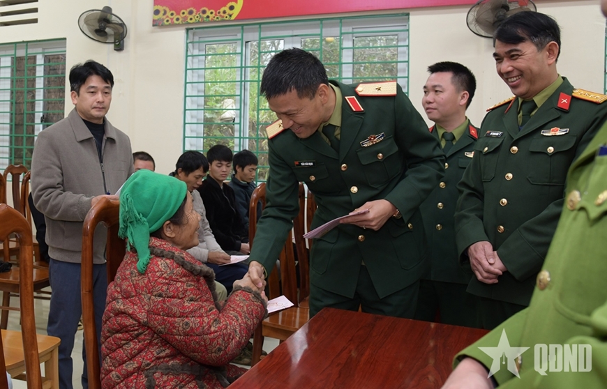 | Trung tướng La Công Phương tặng quà, chúc Tết cán bộ, chiến sĩ Đồn Biên phòng cửa khẩu Sóc Giang (Bộ CHQS tỉnh Cao Bằng). |