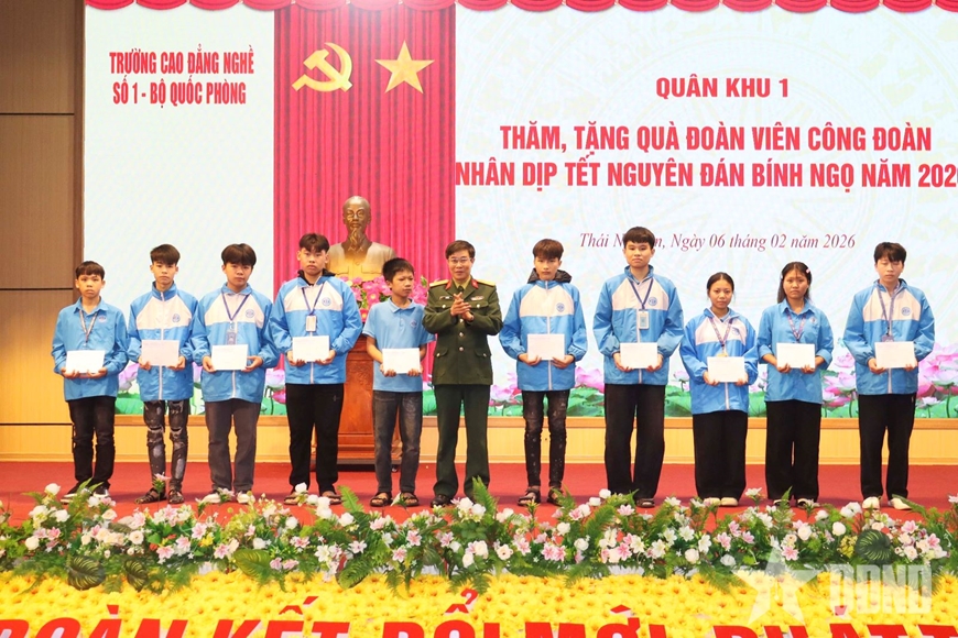 Nhân dịp Tết nguyên đán Bính Ngọ năm 2026, ngày 6-2, đoàn công tác của Quân khu 1 do Đại tá Vũ Bá Bộ, Phó chủ nhiệm Chính trị Quân khu làm trưởng đoàn đã đến thăm, tặng quà đoàn viên công đoàn có hoàn cảnh khó khăn tại Trường Cao đẳng Nghề số 1 - Bộ Quốc phòng.