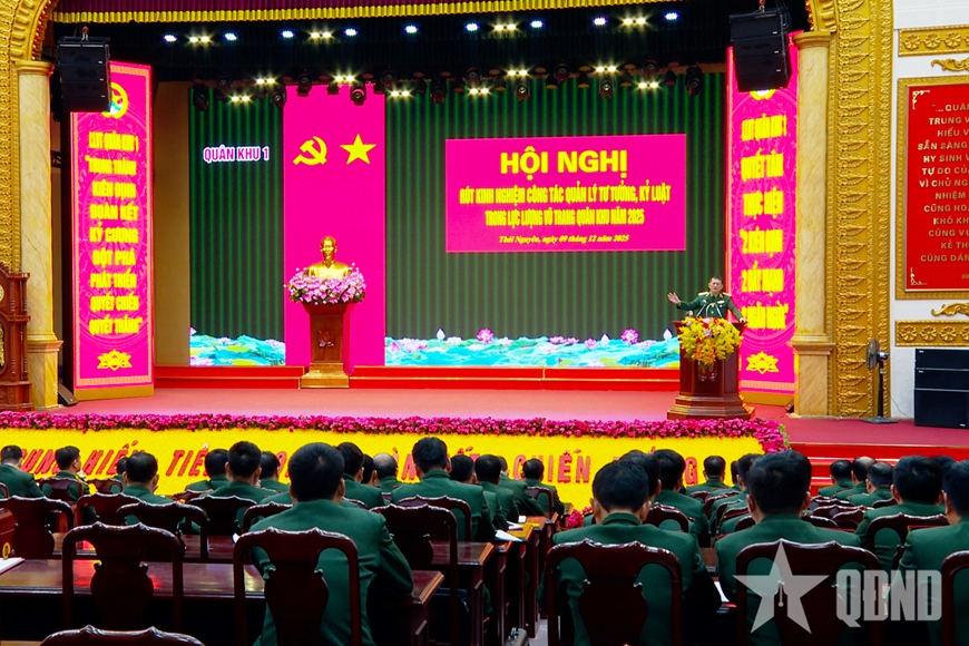Báo cáo trung tâm tại hội nghị nêu rõ: Trong năm 2025, cấp ủy, chỉ huy các cấp trong LLVT Quân khu 1 đã quán triệt và triển khai nghiêm túc, hiệu quả các nghị quyết, chỉ thị, hướng dẫn của Bộ Quốc phòng, Quân ủy Trung ương và Quân khu về công tác quản lý tư tưởng, kỷ luật. Các cơ quan, đơn vị đã duy trì nghiêm nền nếp giáo dục chính trị tư tưởng, thực hiện đúng quy chế dân chủ cơ sở; chú trọng bồi dưỡng bản lĩnh chính trị, ý chí quyết tâm, tinh thần tự giác chấp hành pháp luật, kỷ luật cho bộ đội. Nhờ đó, tình hình tư tưởng của cán bộ, chiến sĩ ổn định, đoàn kết nội bộ được củng cố, ý thức trách nhiệm trong thực hiện nhiệm vụ ngày càng được nâng cao.