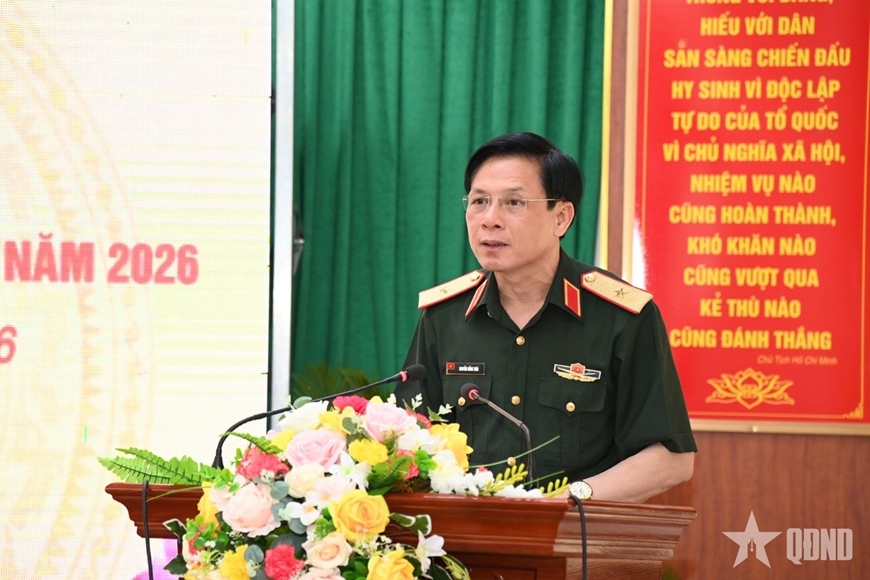 Thiếu tướng Nguyễn Hồng Thái, Ủy viên Ban Thường vụ Đảng ủy, Phó chính ủy Quân khu 2 phát biểu chỉ đạo.