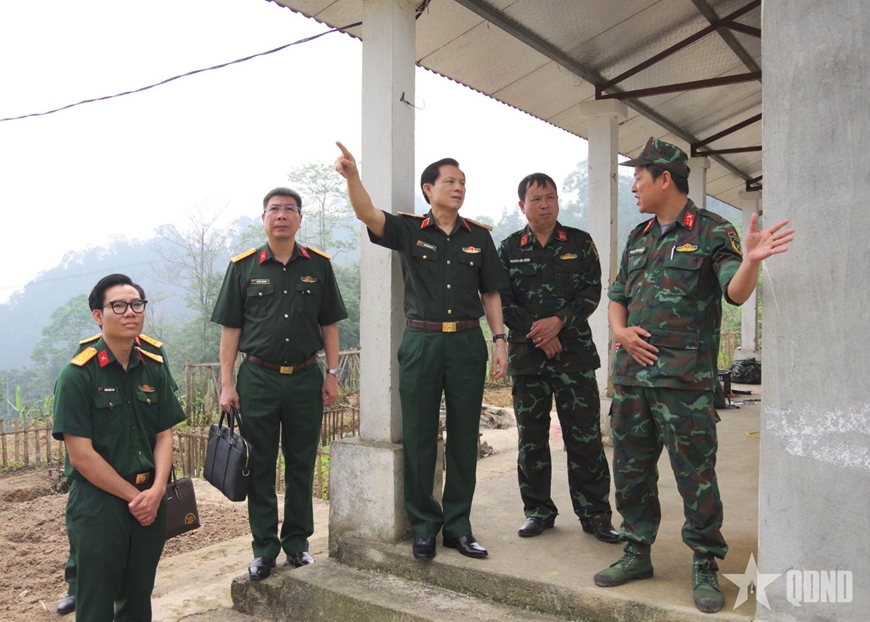 | Thiếu tướng Nguyễn Hồng Thái kiểm tra nơi sinh hoạt, công tác của Ðội tìm kiếm và quy tập HCLS tỉnh Lào Cai. |