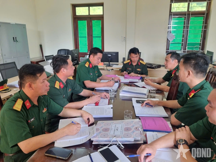 | Đoàn công tác kiểm tra hệ thống văn kiện, sổ sách, kế hoạch tại Ban chỉ huy PTKV3 - Bảo Yên. |