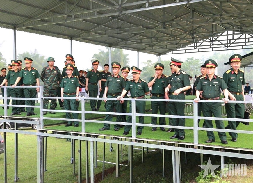 Thiếu tướng Nguyễn Đăng Khải Phó tư lệnh, Tham mưu trưởng Quân khu 2, cùng đoàn công tác kiểm tra tại khu vực diễn tập.