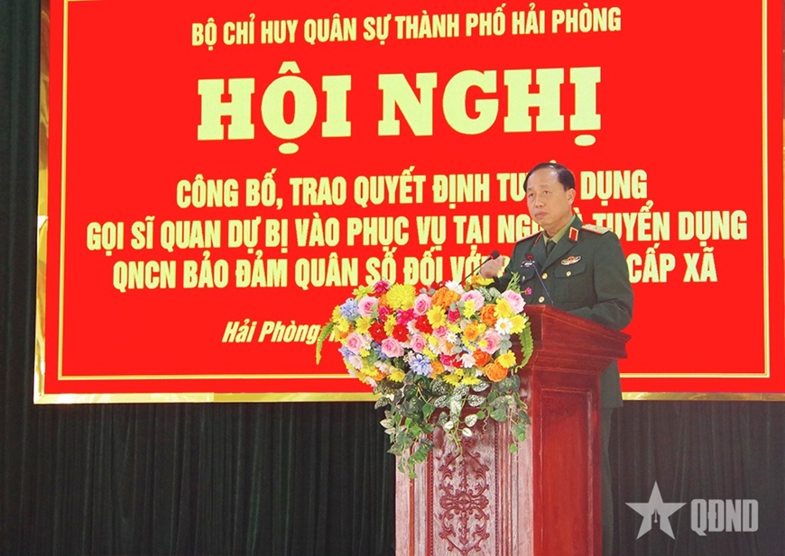 | Thiếu tướng Nguyễn Đức Dũng, Phó tư lệnh, Tham mưu trưởng Quân khu 3 trao quyết định cho các đồng chí sĩ quan, QNCN được tuyển chọn vào Ban CHQS cấp xã trên địa bàn TP Hải Phòng. |