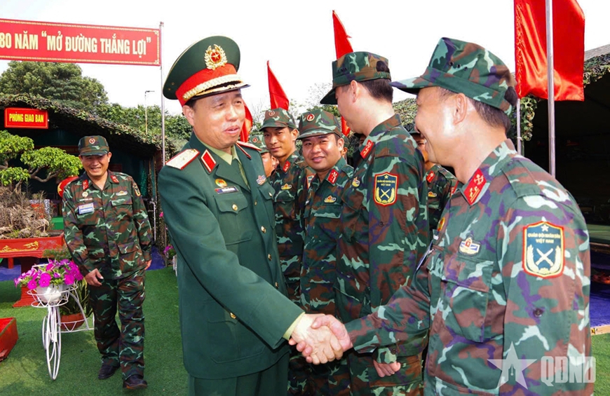 | Lãnh đạo Binh chủng Công binh thăm, động viên đội Quân khu 3. |