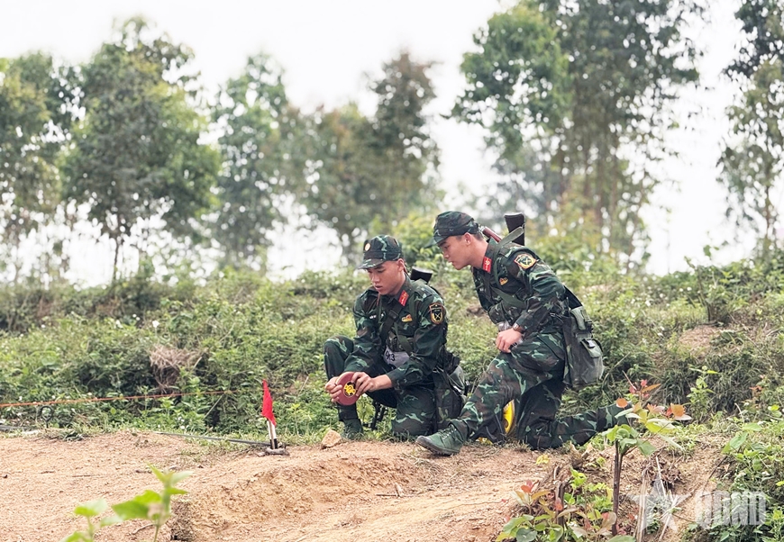 | Đội Quân khu 3 tham gia thi nội dung Công binh sở chỉ huy. |