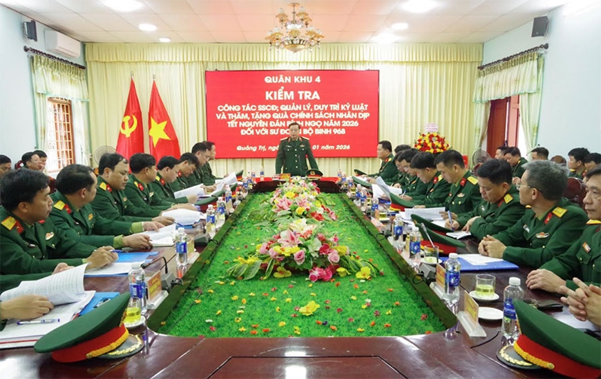 | Đoàn công tác của Quân khu 4 kiểm tra công tác sẵn sàng chiến đấu, quản lý, duy trì kỷ luật và tặng quà chính sách nhân dịp Tết Nguyên đán Bính Ngọ 2026 tại Sư đoàn 968. |