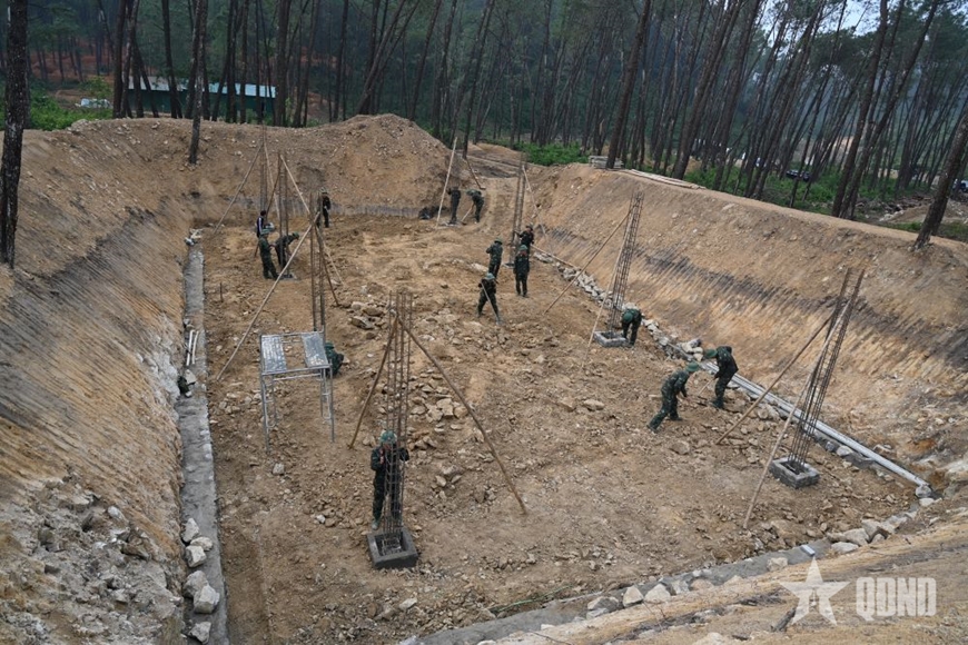 Tập trung xây dựng hệ thống hầm hào, Sở chỉ huy, khu bảo đảm hậu cần, kỹ thuật trong diễn tập, bảo đảm hoàn thành sớm, chất lượng.