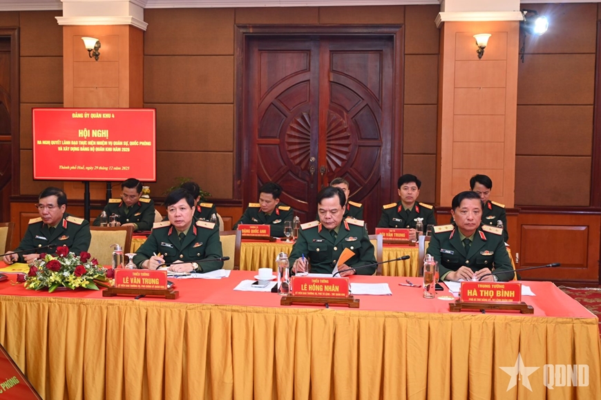 Năm 2025, dưới sự lãnh đạo, chỉ đạo của Quân ủy Trung ương, Bộ Quốc phòng, Đảng ủy, Bộ tư lệnh Quân khu 4 đã phối hợp chặt chẽ với cấp ủy, chính quyền địa phương hoàn thành toàn diện 13 nhóm nhiệm vụ đề ra, trong đó nhiều nhiệm vụ đạt kết quả xuất sắc.