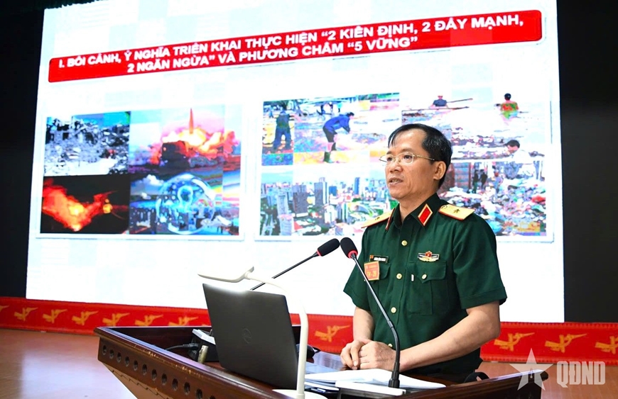 Nội dung nghiên cứu lý luận tập trung vào những vấn đề mới về quân sự, quốc phòng, nhất là các văn bản quy phạm pháp luật ban hành năm 2025; dự báo đối tượng tác chiến; tác chiến phòng thủ trong điều kiện chiến tranh hiện đại; phương pháp xây dựng quyết tâm, kế hoạch tác chiến; công tác Đảng, công tác chính trị; bảo đảm hậu cần, kỹ thuật; cập nhật kinh nghiệm sử dụng phương tiện bay không người lái (UAV) trong xung đột quân sự gần đây và biện pháp phòng, chống...