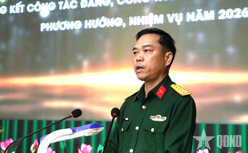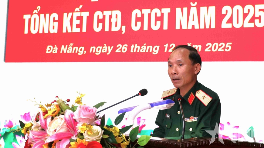 Đại tá Hồ Anh Tuấn, Phó chủ nhiệm Chính trị Quân khu 5 báo cáo kết quả hoạt động CTĐ, CTCT năm 2025, phương hướng nhiệm vụ năm 2026.