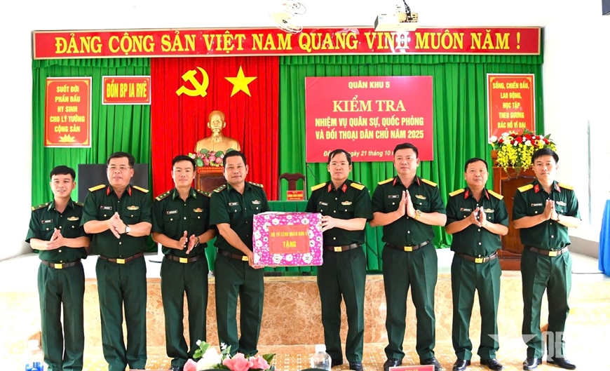 | Đại tá Lương Đình Chung, Bí thư Đảng ủy, Chính ủy Quân khu cùng đoàn công tác đến thăm, tặng quà cán bộ, chiến sĩ hai đồn biên phòng Ea H’Leo và Ia R’Vê. |