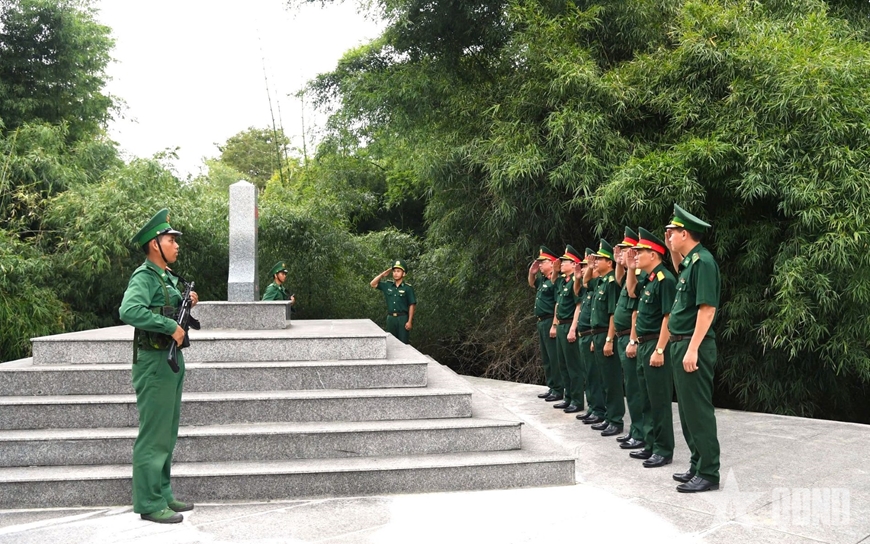 | Đại tá Lương Đình Chung, Bí thư Đảng ủy, Chính ủy Quân khu cùng đoàn công tác đã đến thăm cột mốc 41. |