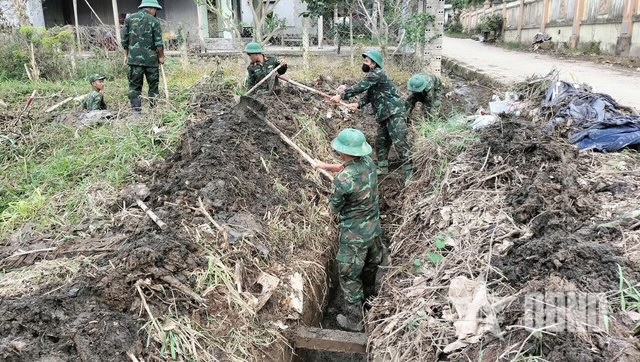 | Bộ đội sửa kênh mương thủy lợi tại xã Tuy An Bắc, tỉnh Đắk Lắk. |