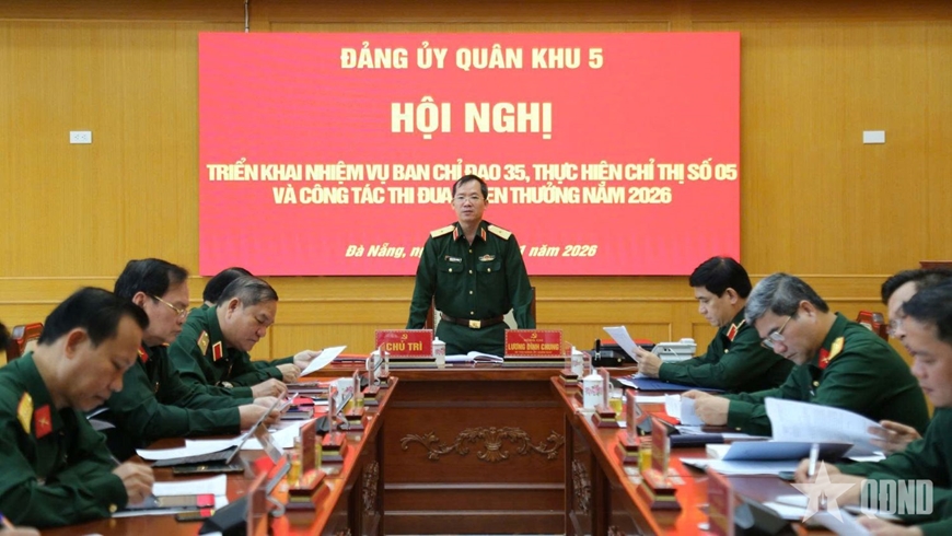 Ngày 21-1, tại Đà Nẵng, Đảng ủy Quân khu 5 tổ chức hội nghị triển khai nhiệm vụ Ban Chỉ đạo 35, thực hiện Chỉ thị số 05 và công tác thi đua, khen thưởng, phong trào Thi đua Quyết thắng năm 2026. Thiếu tướng Lương Đình Chung, Bí thư Đảng ủy, Chính ủy Quân khu 5 chủ trì hội nghị.