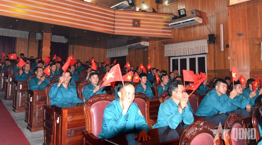 Đông đảo cán bộ, chiến sĩ các cơ quan, đơn vị theo dõi, cổ vũ tại chương trình.
