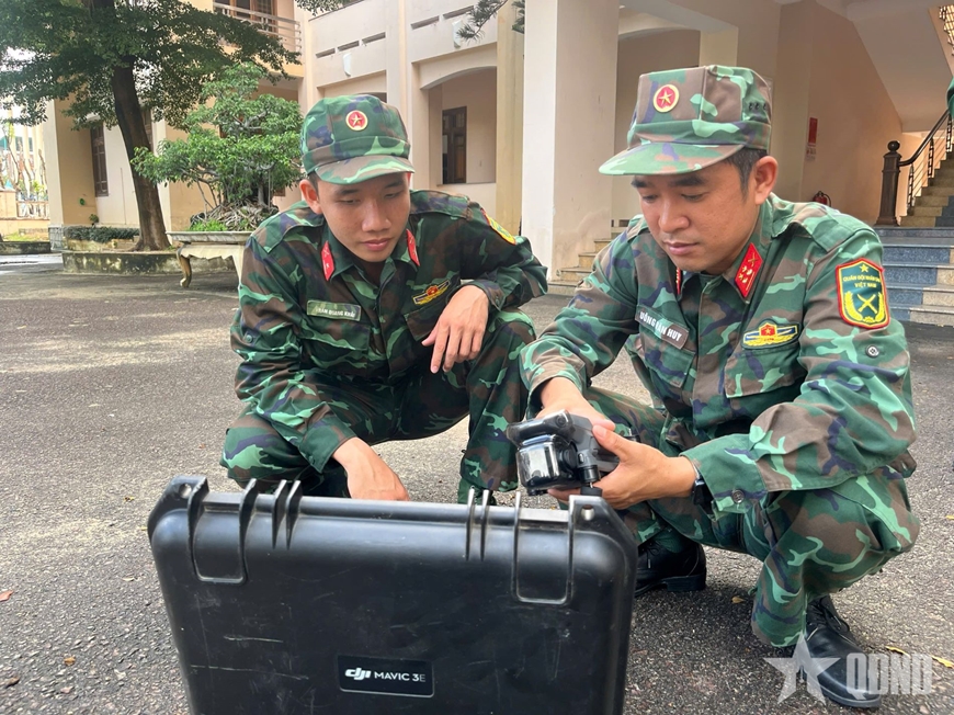 Bộ CHQS tỉnh Gia Lai kiểm tra các thiết bị drone sẵn sàng ứng phó bão số 13.