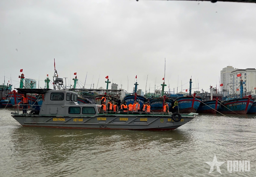 Bộ đội Biên phòng tỉnh Gia Lai tuyên truyền, hỗ trợ, kiểm đếm tàu thuyền vào nơi tránh trú bão.