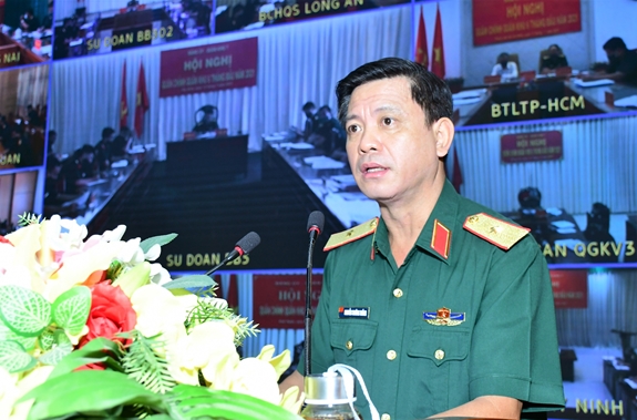 Thiếu tướng Nguyễn Trường Thắng, Tư lệnh Quân khu 7 phát biểu kết luận hội nghị.