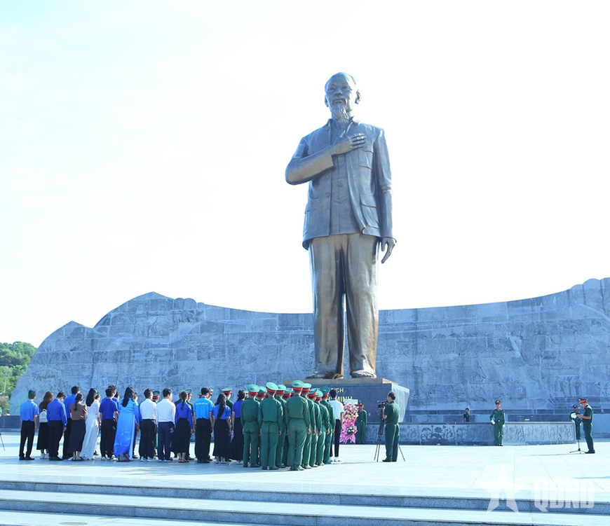 | Đoàn công tác dâng hương, dâng hoa tại Tượng đài Chủ tịch Hồ Chí Minh. |
