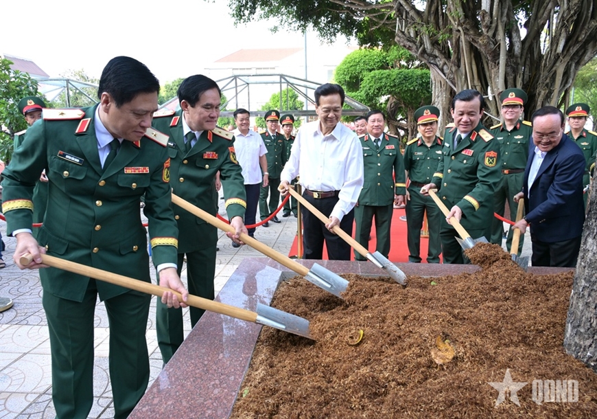 | Nguyên Thủ tướng Nguyễn Tấn Dũng và các đại biểu trồng cây lưu niệm tại Bệnh viện Quân y 121. |