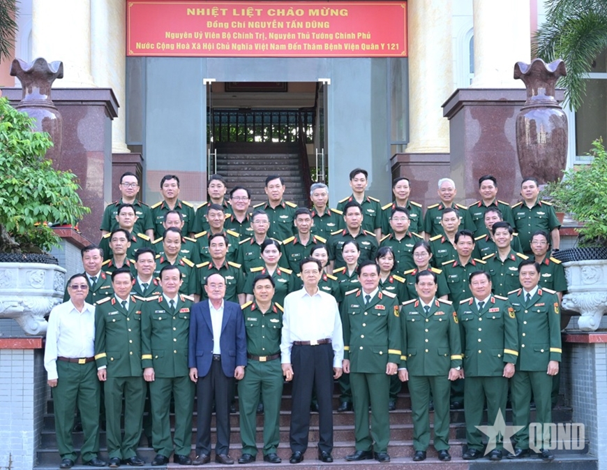 | Nguyên Thủ tướng Nguyễn Tấn Dũng cùng cán bộ, nhân viên Bệnh viện Quân y 121. |