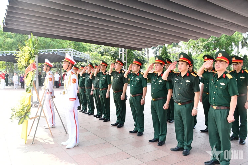 | Trung tướng Lê Quang Đạo cùng đoàn công tác dâng hoa, dâng hương, tri ân các Anh hùng liệt sĩ. |