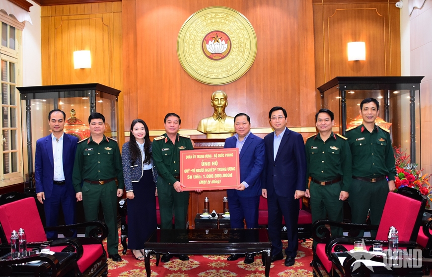 Thừa ủy quyền của Quân ủy Trung ương, Bộ Quốc phòng, Thượng tướng Trương Thiên Tô trao 1 tỷ đồng ủng hộ Quỹ “Vì người nghèo” Trung ương.