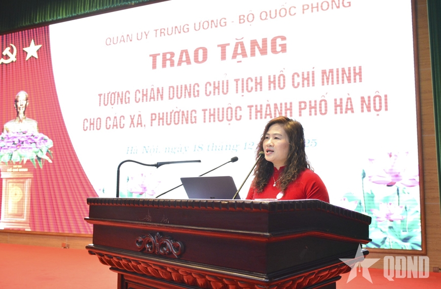 Phát biểu chỉ đạo, Thiếu tướng Nguyễn Khắc Nhân khẳng định, việc tổ chức trao tượng chân dung Chủ tịch Hồ Chí Minh tặng các xã, phường trên địa bàn TP Hà Nội có ý nghĩa rất sâu sắc. Đây không chỉ là hoạt động có giá trị chính trị - tinh thần đặc biệt quan trọng mà còn là sự tri ân, tôn vinh công lao to lớn của Người đối với dân tộc Việt Nam và Thủ đô Hà Nội.