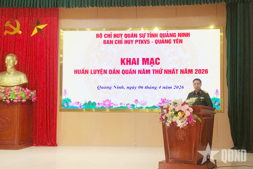 Sáng 6-4, Ban chỉ huy Phòng thủ khu vực (PTKV) 5 - Quảng Yên (Bộ CHQS tỉnh Quảng Ninh) tổ chức khai mạc huấn luyện dân quân năm thứ nhất năm 2026. Đại tá Tiêu Văn Lẫm, Phó chỉ huy trưởng Bộ CHQS tỉnh dự và chỉ đạo.