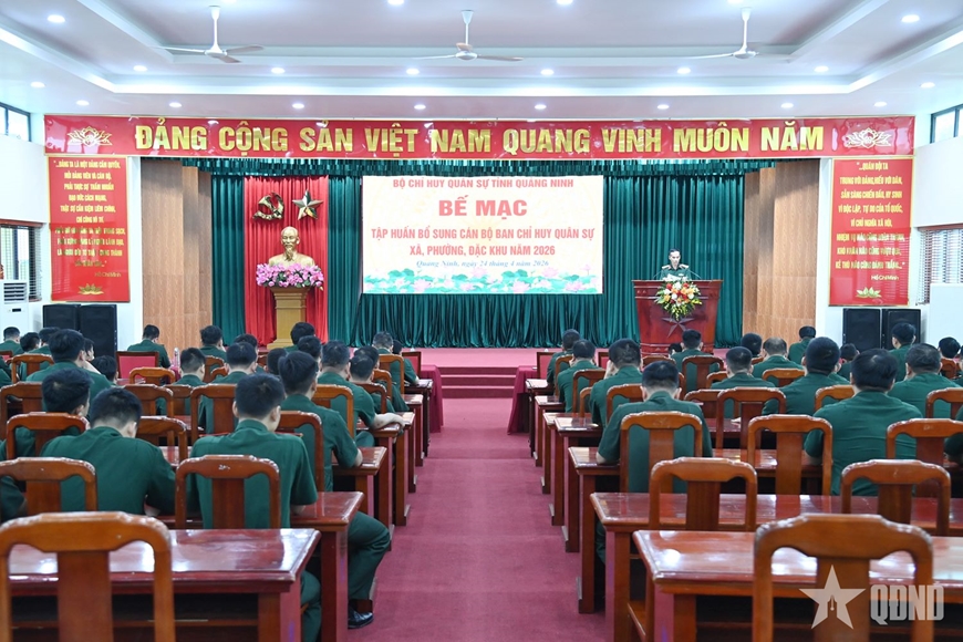 Chiều 24-4, tại Trung đoàn 244, Bộ CHQS tỉnh Quảng Ninh tổ chức bế mạc lớp tập huấn bổ sung cán bộ Ban CHQS xã, phường, đặc khu năm 2026.