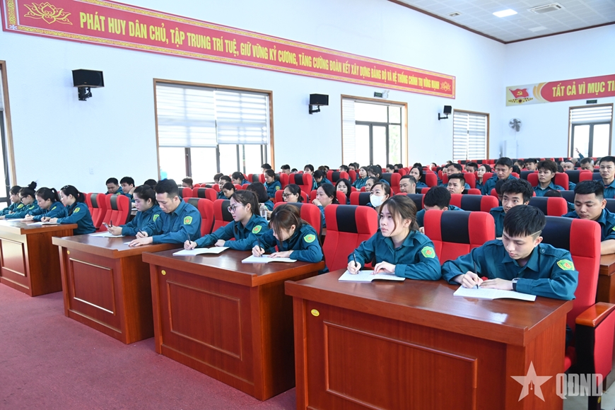 Ngay sau khai mạc, các đồng chí dân quân được nghiên cứu một số nội dung về giáo dục chính trị - pháp luật.