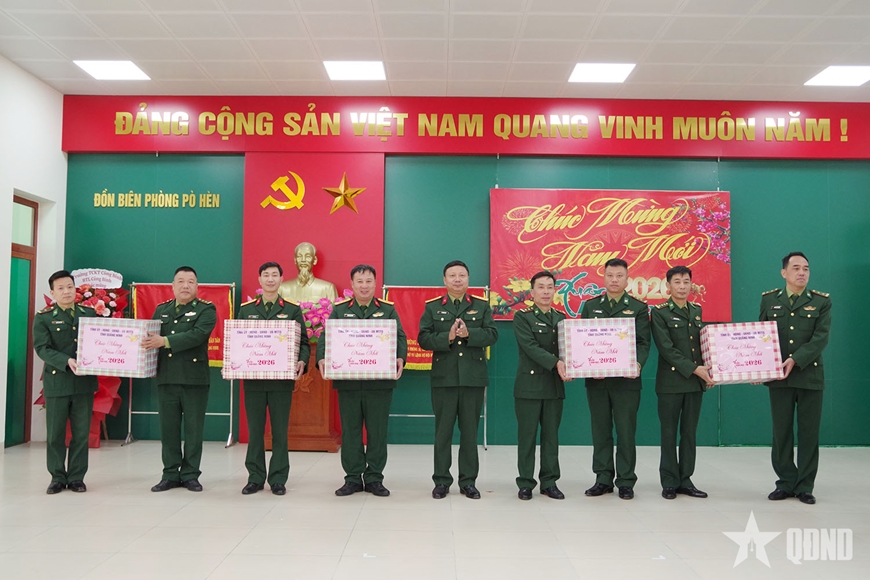 Đại tá Lê Trọng Hòa, Ủy viên Ban Thường vụ Tỉnh ủy, Chỉ huy trưởng Bộ CHQS tỉnh Quảng Ninh, trao quà Tết của Tỉnh ủy, HĐND, UBND, UBMTTQ tỉnh cho các đơn vị LLVT trên địa bàn tuyến biên giới của tỉnh.