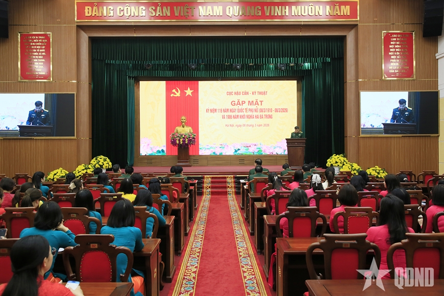 Sáng 6-3, Cục Hậu cần - Kỹ thuật (Tổng cục Hậu cần - Kỹ thuật) tổ chức gặp mặt chào mừng kỷ niệm 116 năm Ngày Quốc tế Phụ nữ (8-3-1910 / 8-3-2026) và 1986 năm khởi nghĩa Hai Bà Trưng. Dự, chủ trì gặp mặt có Đại tá Phạm Văn Hiểu, Cục trưởng Cục Hậu cần - Kỹ thuật.
