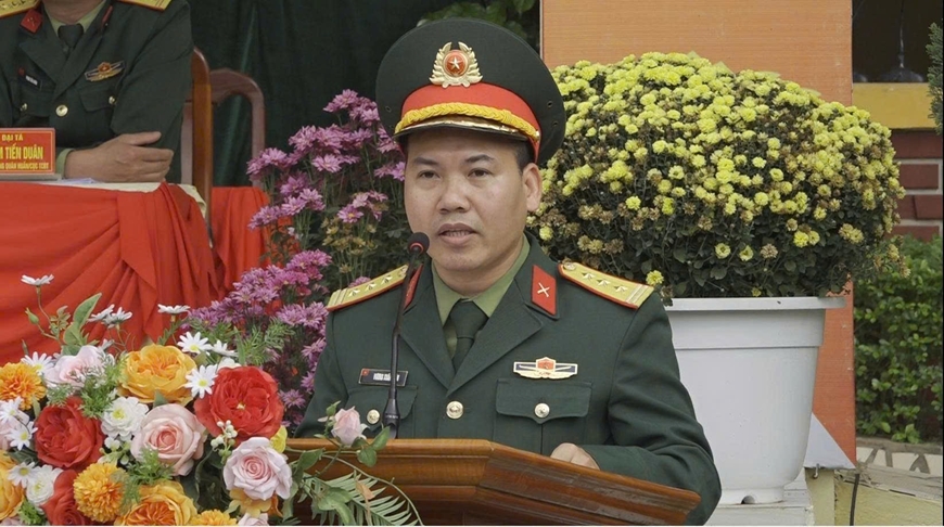 Phát biểu chỉ đạo buổi lễ, thay mặt Đảng ủy, chỉ huy Cục Tác chiến Điện tử, Bộ Tổng Tham mưu, Đại tá Hoàng Tú Xinh, Phó cục trưởng Cục Tác chiến điện tử ghi nhận và biểu dương những kết quả Trung tâm 95 đã đạt được trong công tác huấn luyện năm 2025.