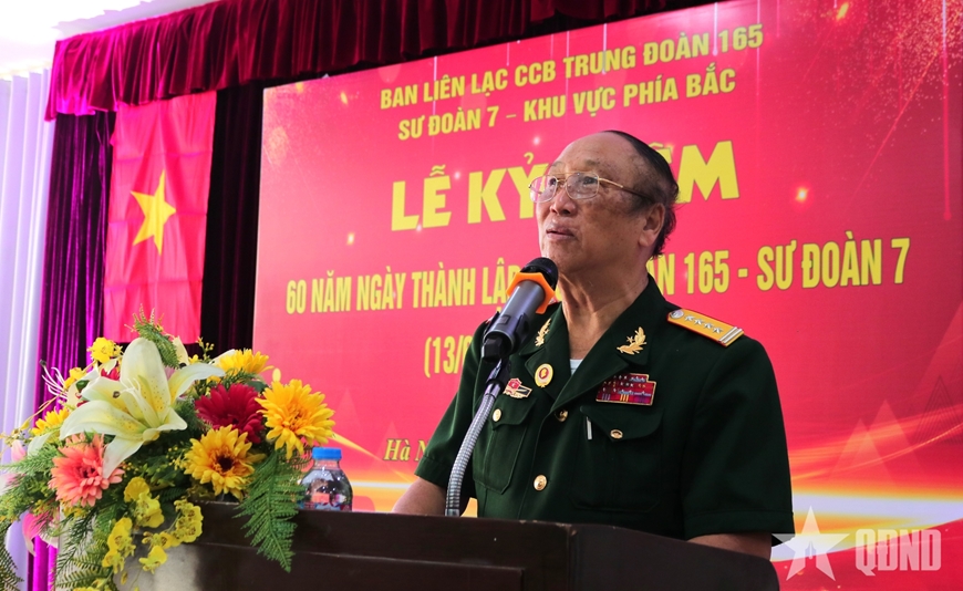 Diễn văn tại buổi lễ do Đại tá Nguyễn Cao Cử, Trưởng ban Liên lạc Trung đoàn 165 miền Bắc đã ôn lại chặng đường vẻ vang của Trung đoàn. Trung đoàn 165 Sư đoàn 7 (tiền thân là Trung đoàn 165, Sư đoàn 312, Quân đoàn 12) ra đời và tham gia chiến đấu ngay từ thời kỳ đầu của cuộc kháng chiến chống thực dân Pháp; các thế hệ cán bộ, chiến sĩ đã đoàn kết chiến đấu anh dũng, ngoan cường, lập công xuất sắc, góp phần tạo nên danh hiệu “Thành đồng biên giới”.