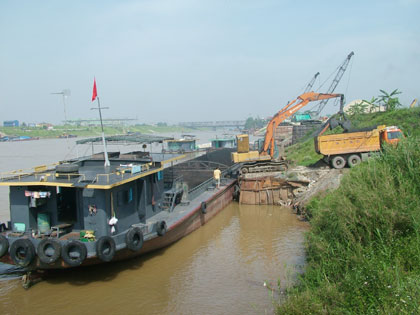 Vị trí đặt cầu phao bên kia sông