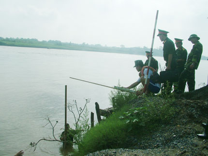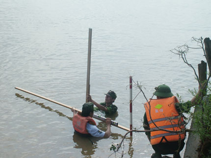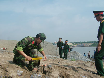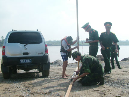 Đo độ cao của mặt đất để làm đường xuống cầu phao