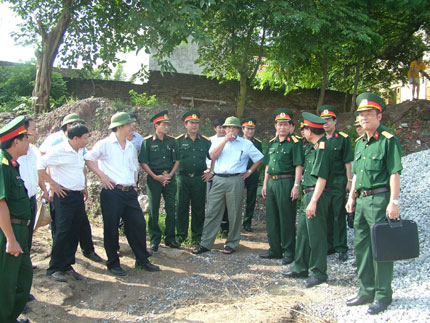 Lãnh đạo, chỉ huy Đoàn H49 bàn phương án phối hợp xây dựng cầu phao với các cơ quan chức năng của TP. Hà Nội