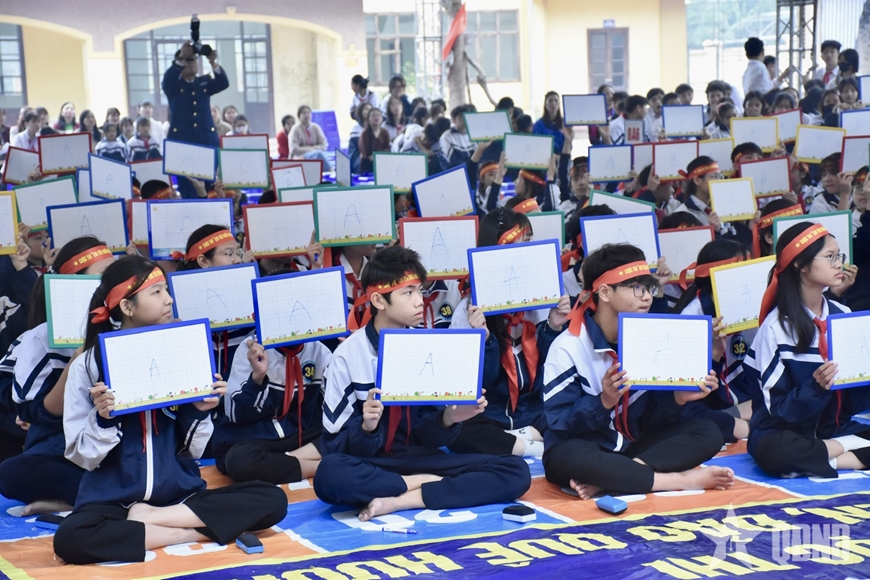 | Các em học sinh trả lời câu hỏi tại cuộc thi. |